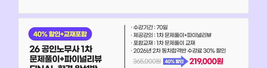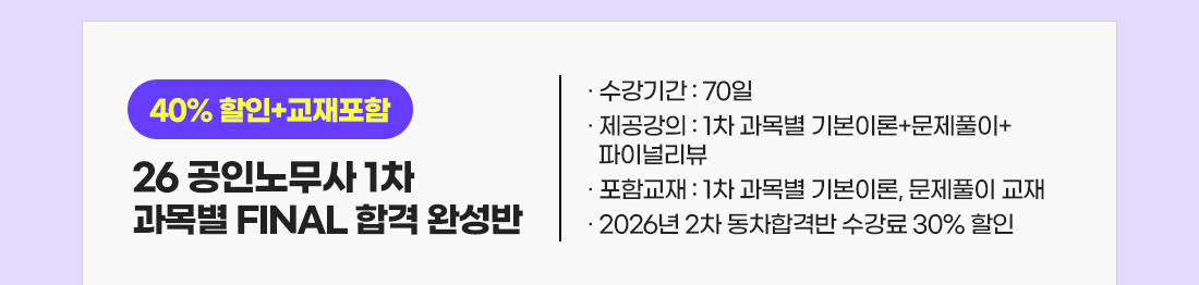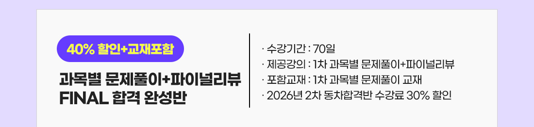 1차 FINAL 합격 완성반 할인 안내(~4/30)